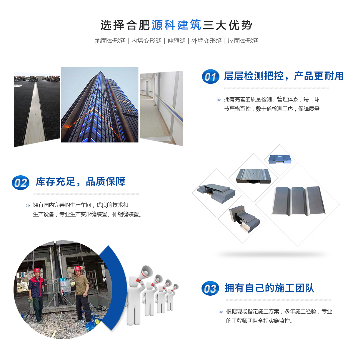 合肥源科建筑科技有限公司位于長三角城市群副中心的合肥,面向國內(nèi)外生產(chǎn)銷售是專業(yè)研發(fā)及產(chǎn)銷各種建筑伸縮縫、地面變形縫、內(nèi)外墻變形縫等裝置。參與了省內(nèi)大型工程(醫(yī)院、學(xué)校、工廠、大型商場超市等)建設(shè),是諸多建設(shè)單位和設(shè)計學(xué)院長期合作單位,在建筑變形縫伸縮縫行業(yè)樹立了自己的專業(yè)形象。本公司根據(jù)建筑業(yè)的發(fā)展和用戶的實際需要,深入研制出目前國內(nèi)新型的建筑伸縮縫裝置。按照使用部位分為四個類別:樓地面變形縫;內(nèi)墻、頂棚吊頂變形縫;外墻變形縫;屋面變形縫;按照變形...